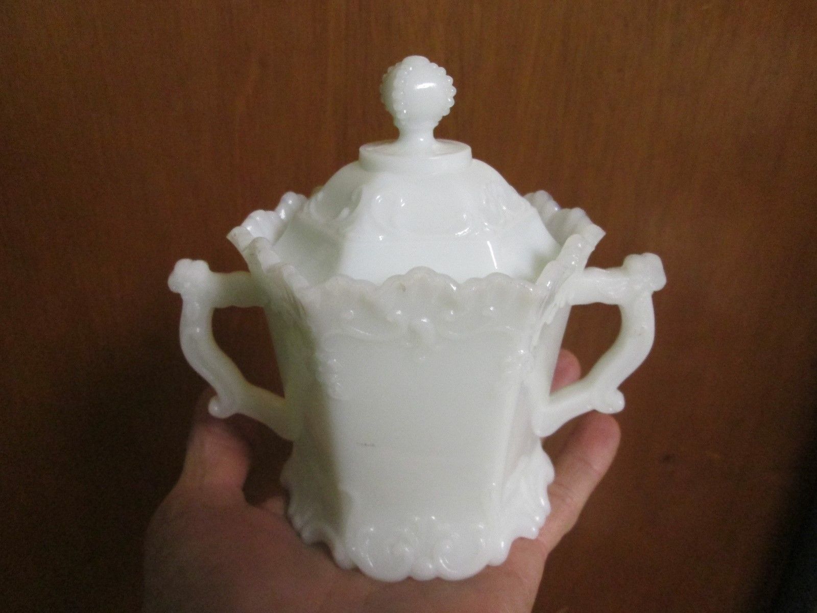 Vintage Ornate Milk Glass Sugar Bowl-EXC!-L@@K!