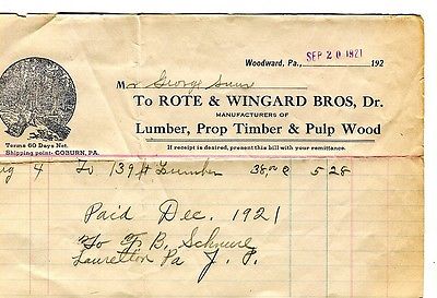 Woodward,PA-Rote & Wingard Bros-bill of sale- lumber-1921