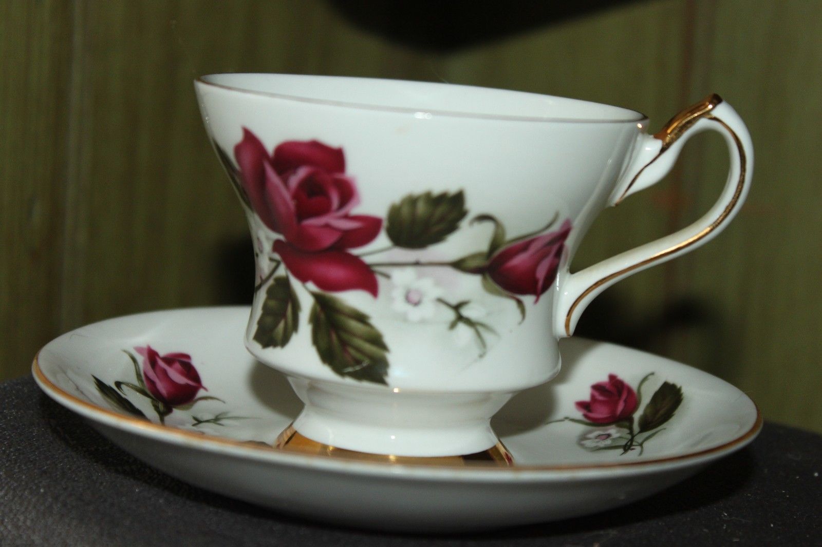 VINTAGE SOCIETY FINE BONE CHINA ROSES TEA CUP AND SAUCER 1949/894