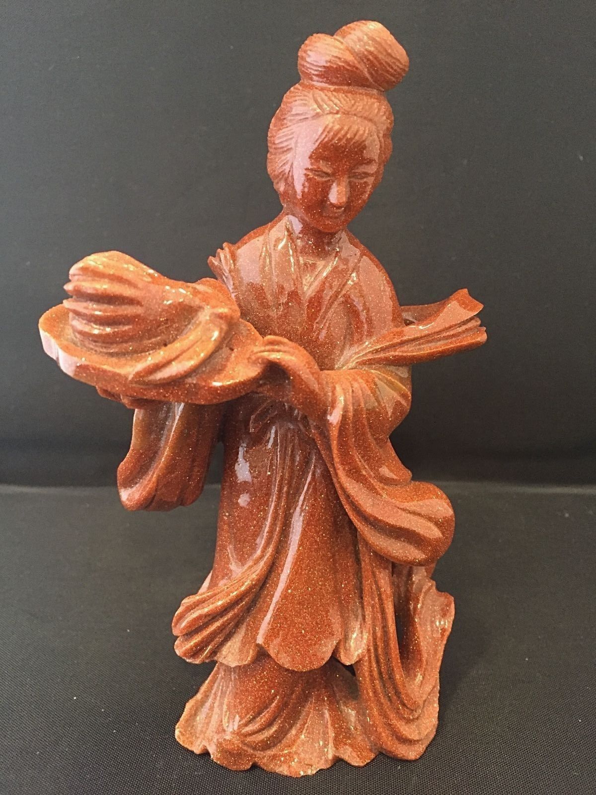 CHINESE GOLDSTONE CARVING FIGURINE OF A LADY LATE 19TH /EARLY 20TH