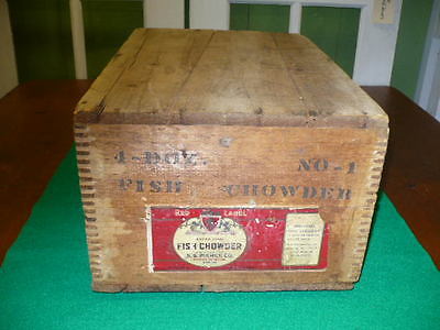 ANTIQUE ADVERTISING FISH CHOWDER SHIPPING CRATE - S.S. PIERCE CO. BOSTON MA.
