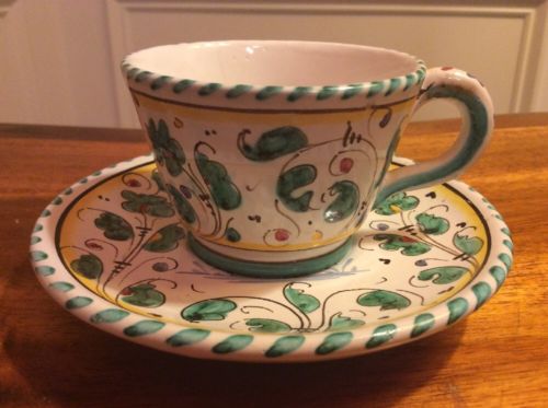 Title (ebay affiliate link): CERAMIC TERRACOTTA DEMITASSE HAND PAINTED TEA CUP & SAUCER GRAZIA DERUTA ITALY