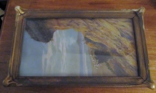 Antique Pie Crust Picture Frame w/Ocean Print Pretty 13 1/2" x 8"