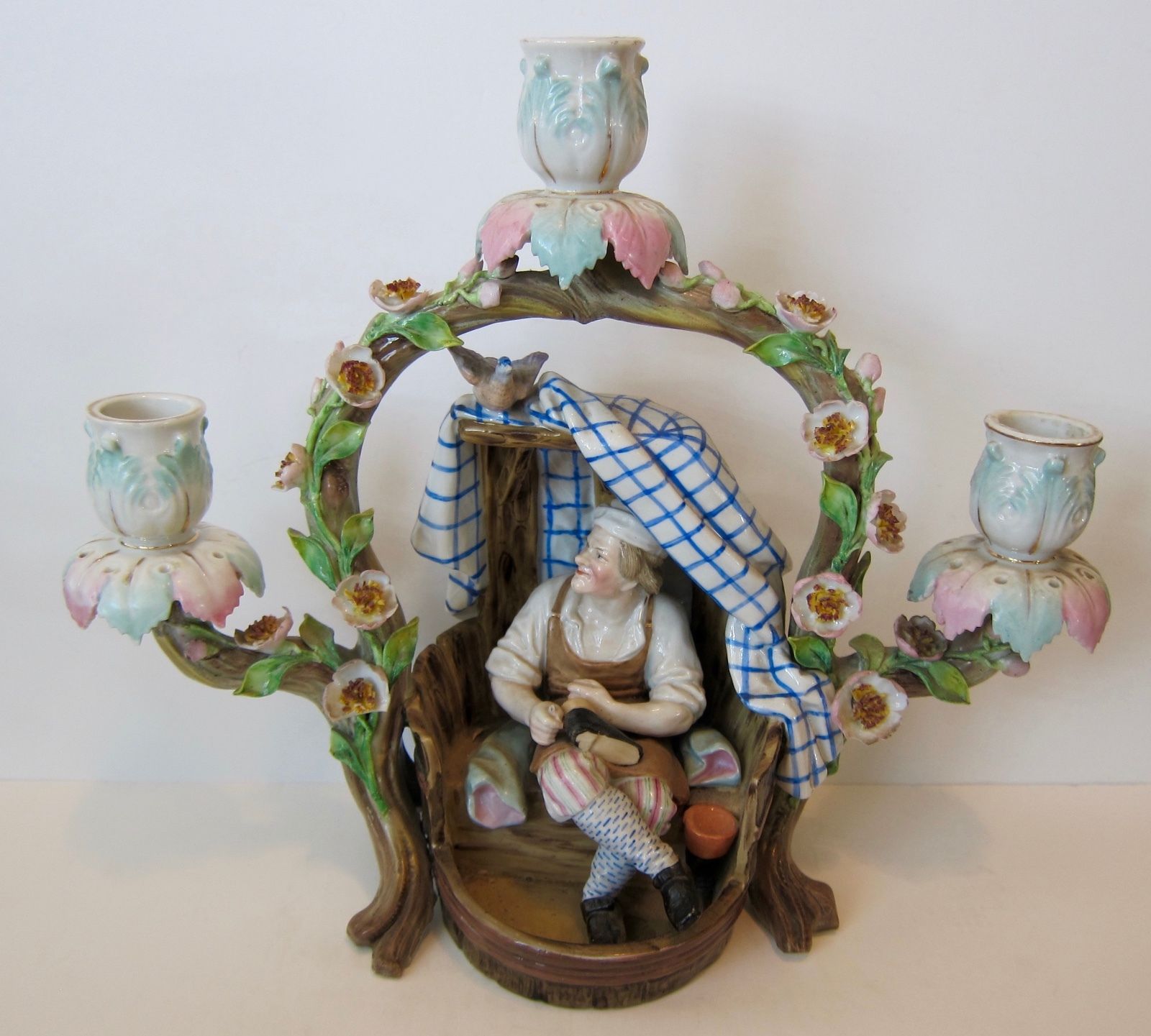 Antique  Meissen Porcelain Cobbler Figurine Candelabra