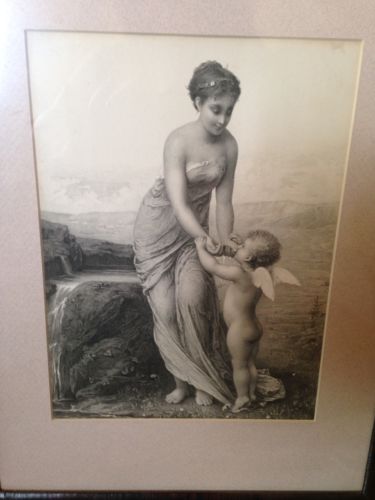 Vintage Art Deco Woman And Child Cherub Picture Wood Frame Retro