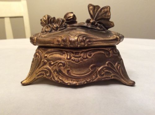 ANTIQUE VINTAGE BOX ART DECO NOUVEAU METAL TRINKET JEWELRY FLOWER