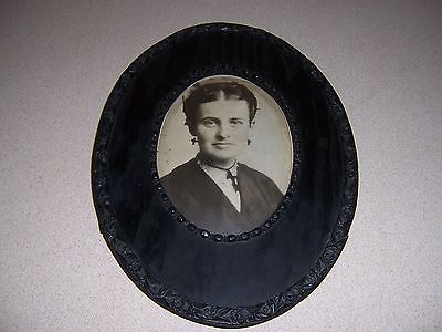 ANTIQUE 11" OVAL WOOD PICTURE FRAME w/ CONCAVE GLASS