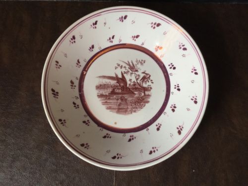 Antique English Pink Luster Lusterware Porcelain Plate Exotic Birds