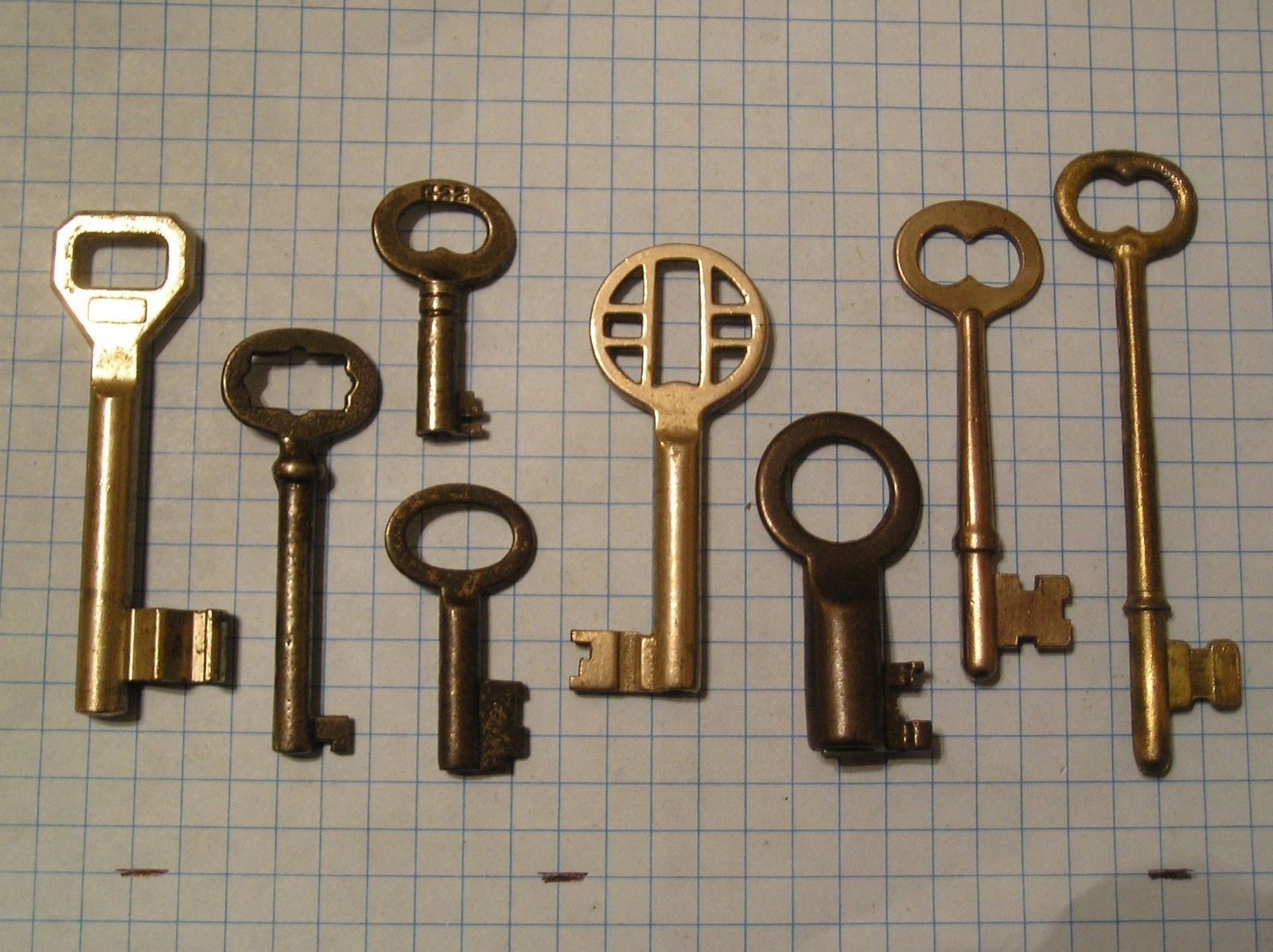 LOT OF 8 ANTIQUE KEYS, SKELETON, FURNITURE, BARREL, CABINET AND OLD LOCK KEYS