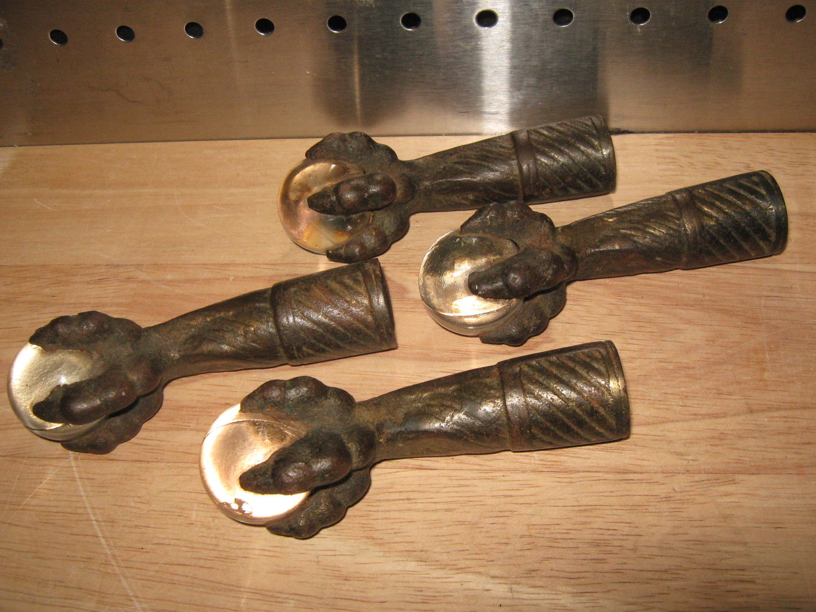 Set of 4 Antique Brass & Glass Eagle Talon Piano Feet, Claw Foot, Unique