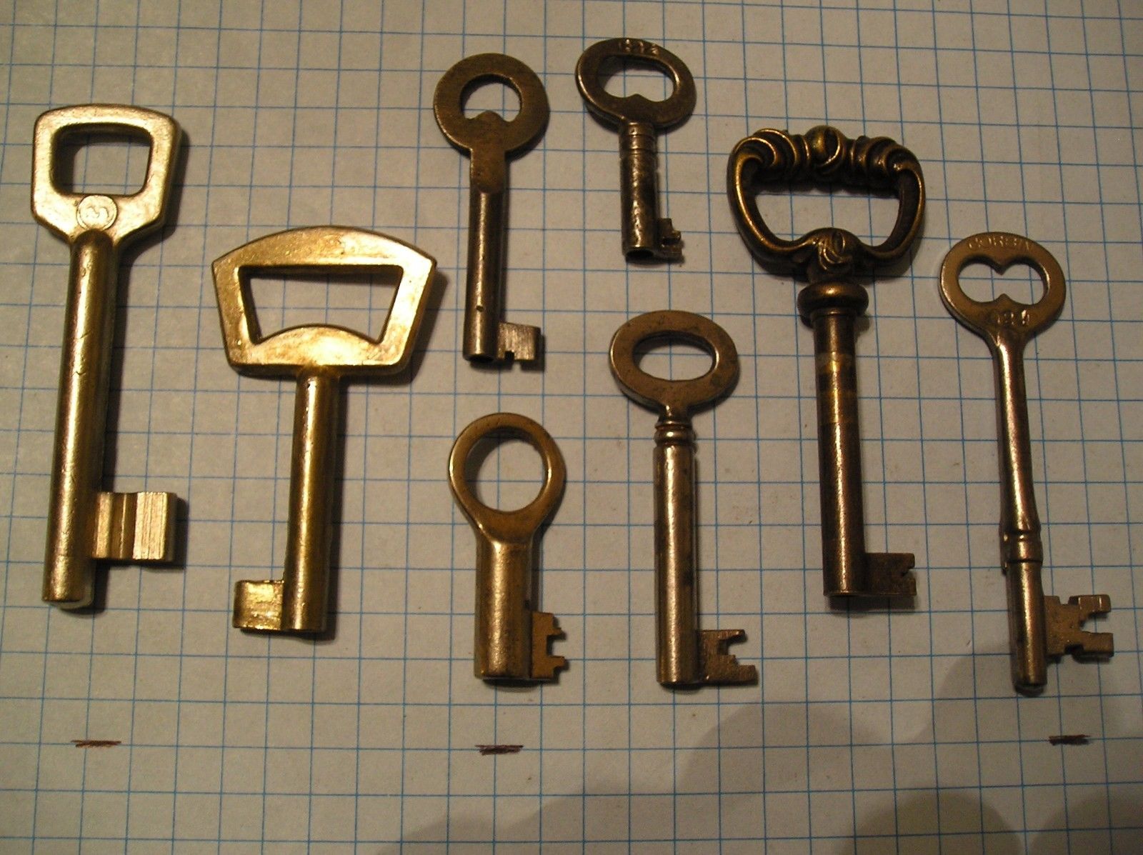 Title (ebay affiliate link): LOT OF 8 ANTIQUE KEYS, SKELETON, FURNITURE, BARREL, CABINET AND OLD LOCK KEYS