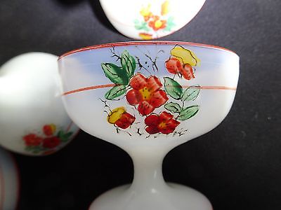 HAZEL ATLAS DEPRESSION MILK GLASS red flowers CUSTARD sorbet sherbet FOOTED CUP