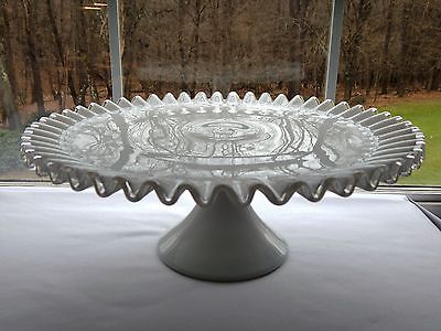 Vintage Fenton Silver Crest Milk Glass Ruffled Edge Cake Stand 13"
