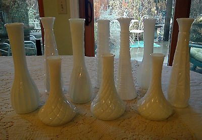 Title (ebay affiliate link): LOT OF 10 VINTAGE MILK GLASS BUD VASES WEDDING, SHOWER, PARTY, DECOR