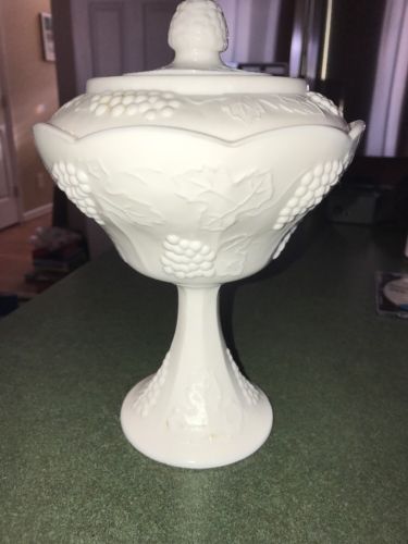 White milk glass Candy Dish-Grape Vine