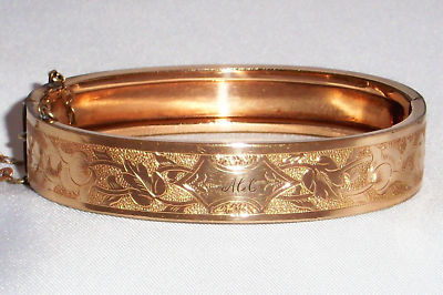 VICTORIAN ANTIQUE ROSE GOLD SHELL BANGLE BRACELET