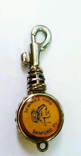 VINTAGE FORD KEY CHAIN with BOTTLE OPENER SEMINOLE FORD SANFORD FLORIDA Indian