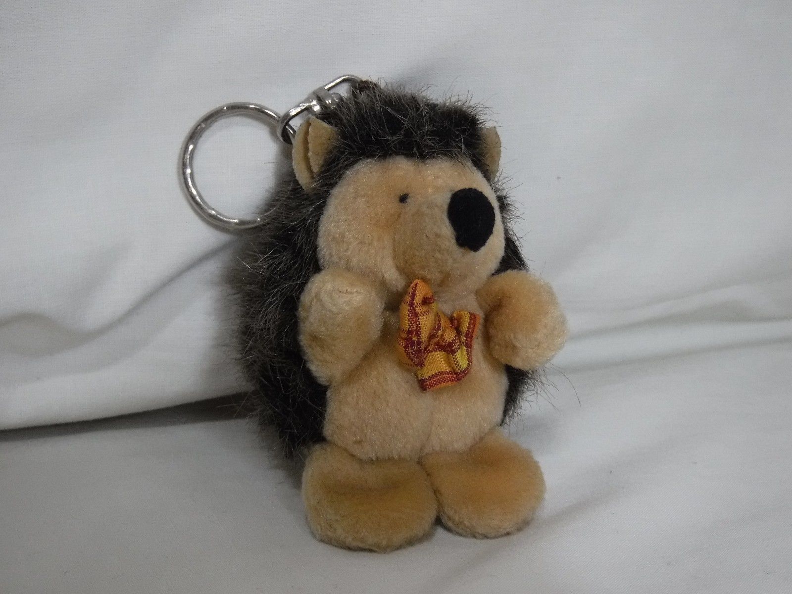 Title (ebay affiliate link): HEDGEHOG STUFFED ANIMAL PLUSH KEYCHAIN PLAID BOW TIE VINTAGE 3.5" TALL BROWN