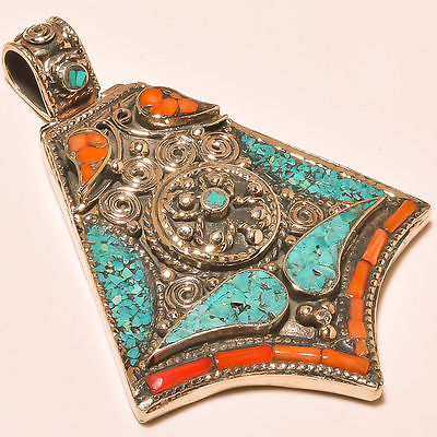 Title (ebay affiliate link): ANTIQUE LOOK TURQUOISE WITH RED CORAL - 925 SILVER JEWELRY PENDANT SIZE 9