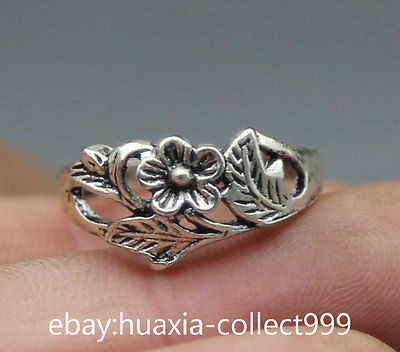 Title (ebay affiliate link): 22MM Old China Miao Silver Small Ring Flower foliage Jewelry Madam Fashion Ring