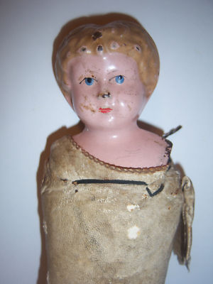 1890s Antique MINERVA metal TIN german DOLL leather #1