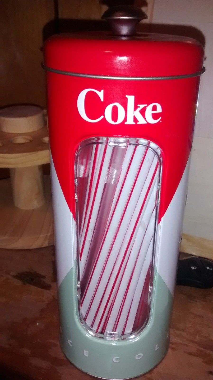 coca cola tin with straws