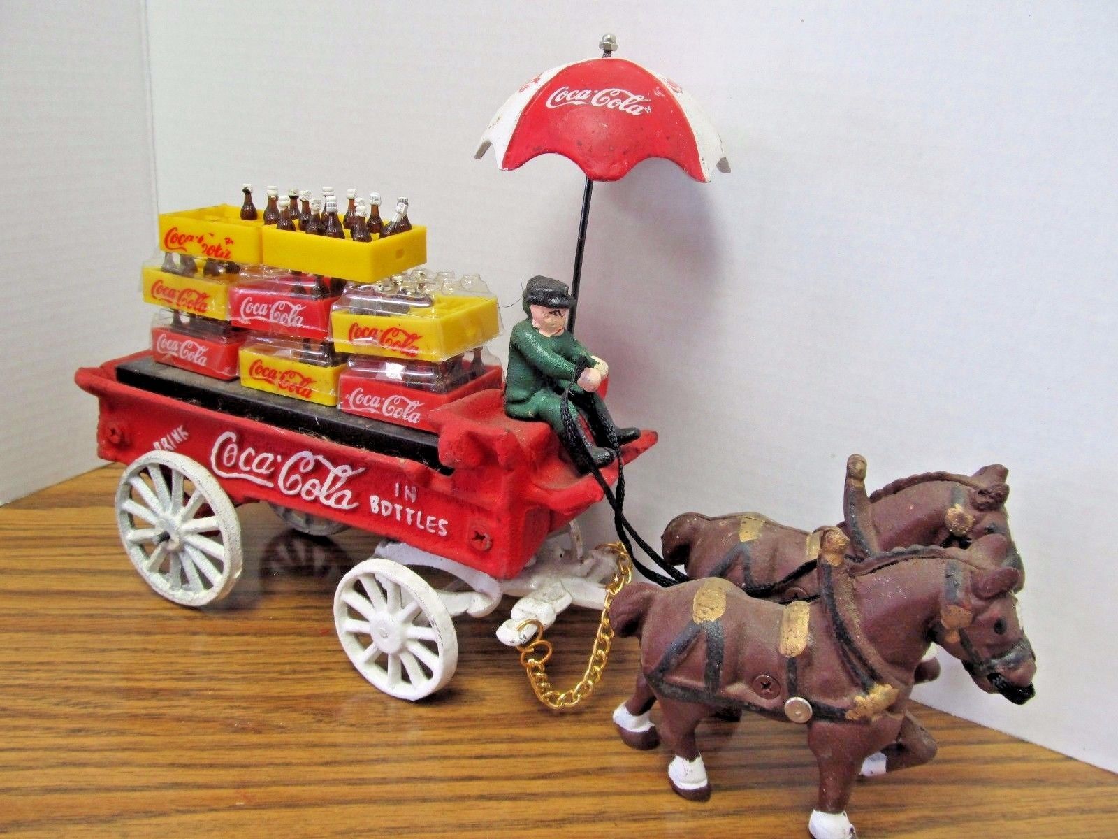 Title (ebay affiliate link): Vintage Cast Iron Coca-Cola Delivery Wagon with Horses Driver Crates and Coke