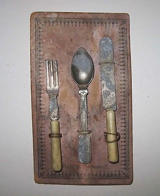 Title (ebay affiliate link): Antique German Miniature Metal Doll Silverware Set on Original Card