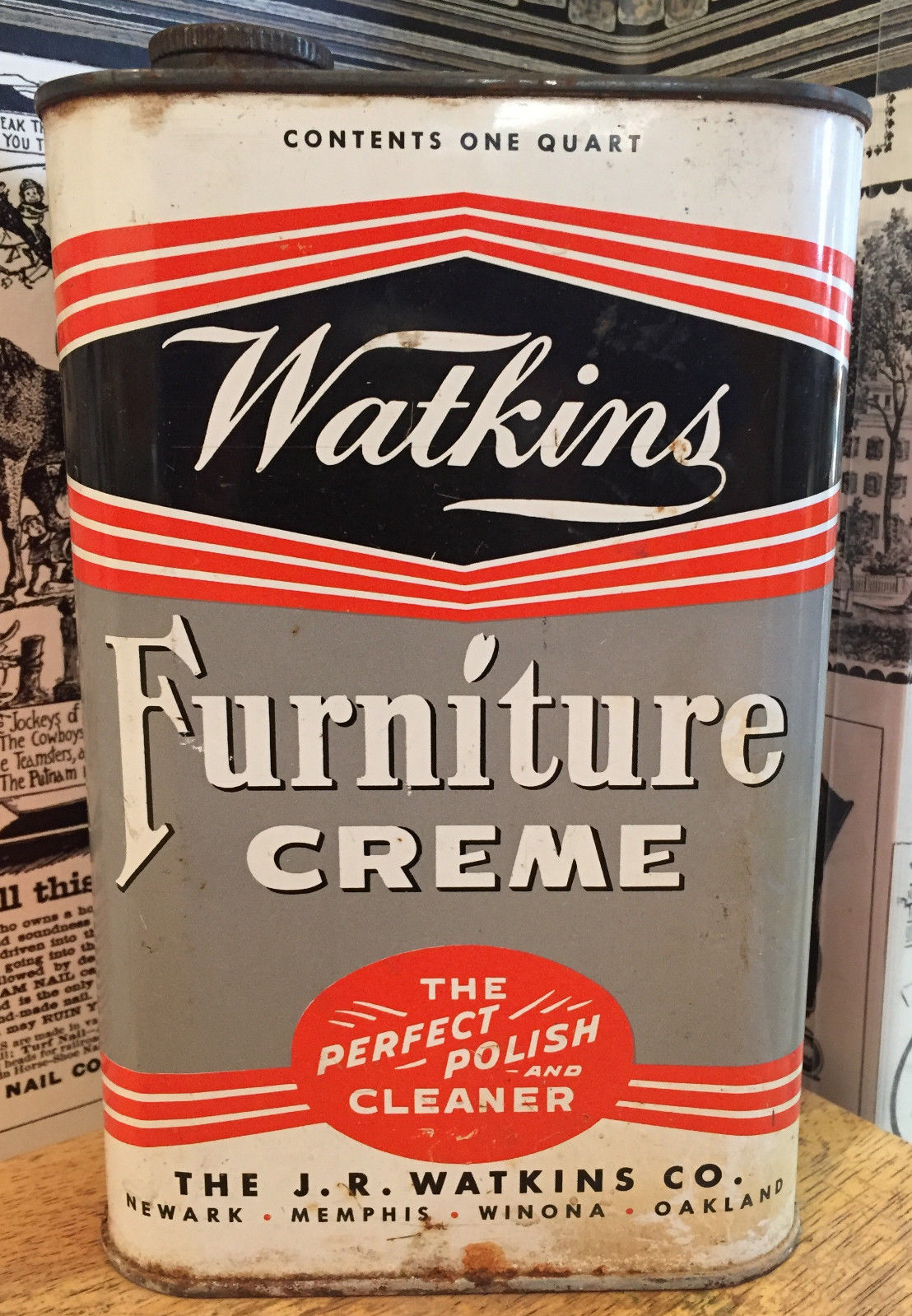 Title (ebay affiliate link): Vintage Watkins Furniture Cream Can - Polish / Cleaner - Advertising - 1 Quart