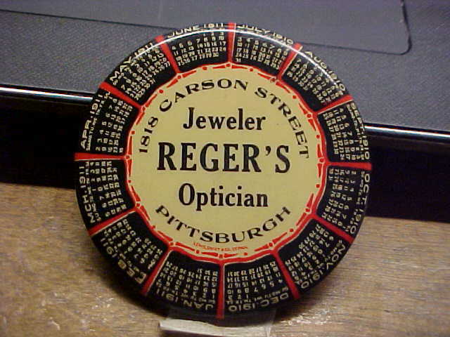 Title (ebay affiliate link): PA, PITTSBURGH REGERS Jeweler Optician 1910 Calendar Advertising Pocket Mirror