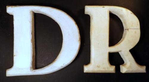 Title (ebay affiliate link): 2 Rustic Homemade Vtg 8-inch Wood Trade Sign Letters ''D R'' Old White Paint