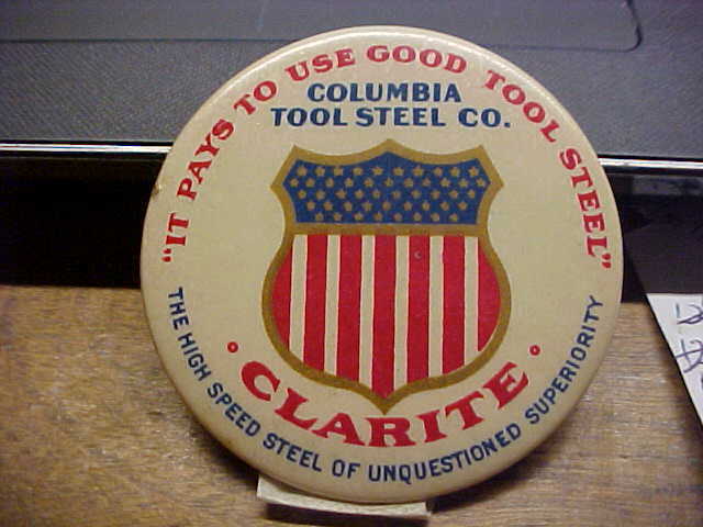 COLUMBIA TOOL STEEL CO Clarite Celluloid Advertising Pocket Mirror