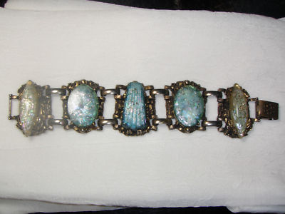Chunky Detailed Antique/Vintage Art Glass Bracelet