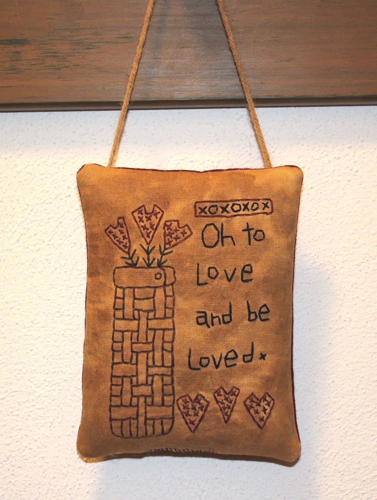 Title (ebay affiliate link): Primitive Stitchery Pillow Ornament ~ Valentine ~ Oh to Love and Be Loved