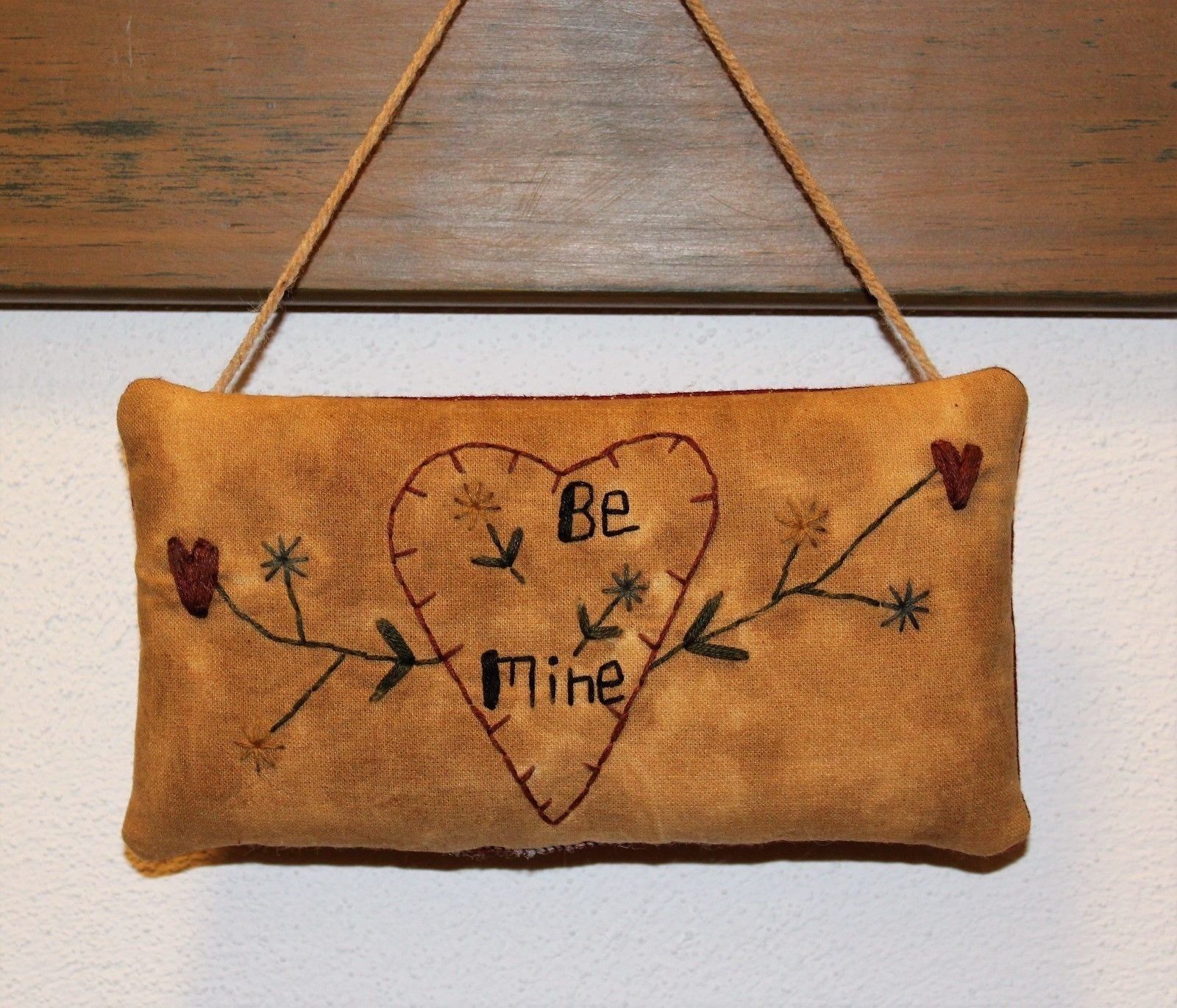 Title (ebay affiliate link): Primitive Stitchery Pillow Ornament ~ Valentine, Heart with Be Mine and Garland