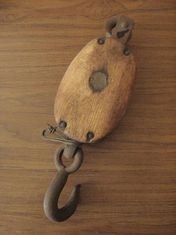 Title (ebay affiliate link): HAY HOOK SINGLE PULLEY vintage farm tool steam punk barn find 17" 8lb antique