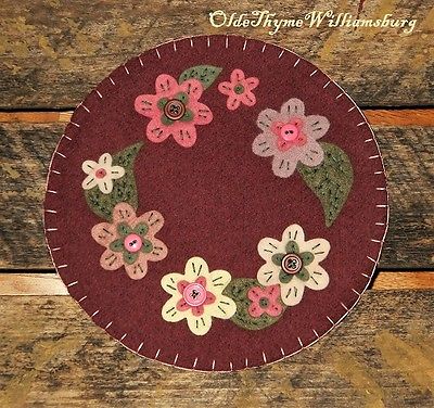 Title (ebay affiliate link): Primitive Cranberry SPRING Flowers Wool Felt Penny Rug ~ Buttons Candle Mat