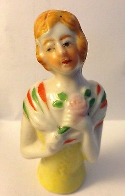 Vintage Porcelain Half Doll, Pin Cushion, Japan