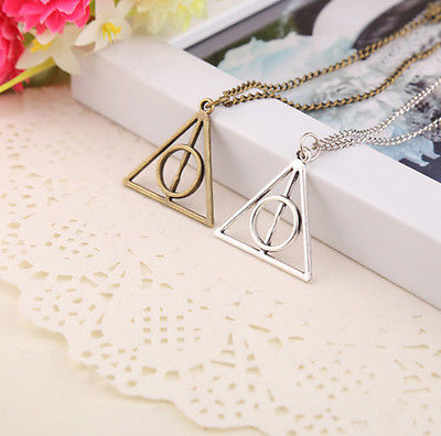 Title (ebay affiliate link): Retro For Harry Potter Death Hallows Antique Silver Triangle Pendant Necklaces