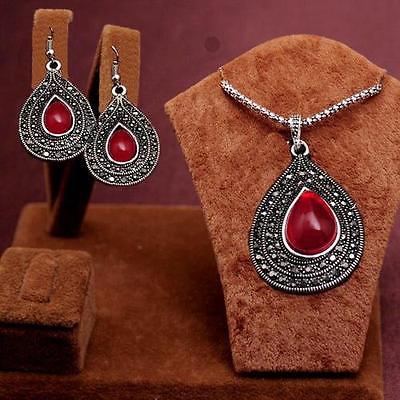 Title (ebay affiliate link): 2PCS New antique silver Red Water Drop Necklace eardrop Jewelry Set Women''s gift