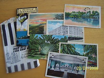 6 VINTAGE FLORIDA POSTCARDS & THE STORY OF JACKSONVILLE PAMPHLET + BAG