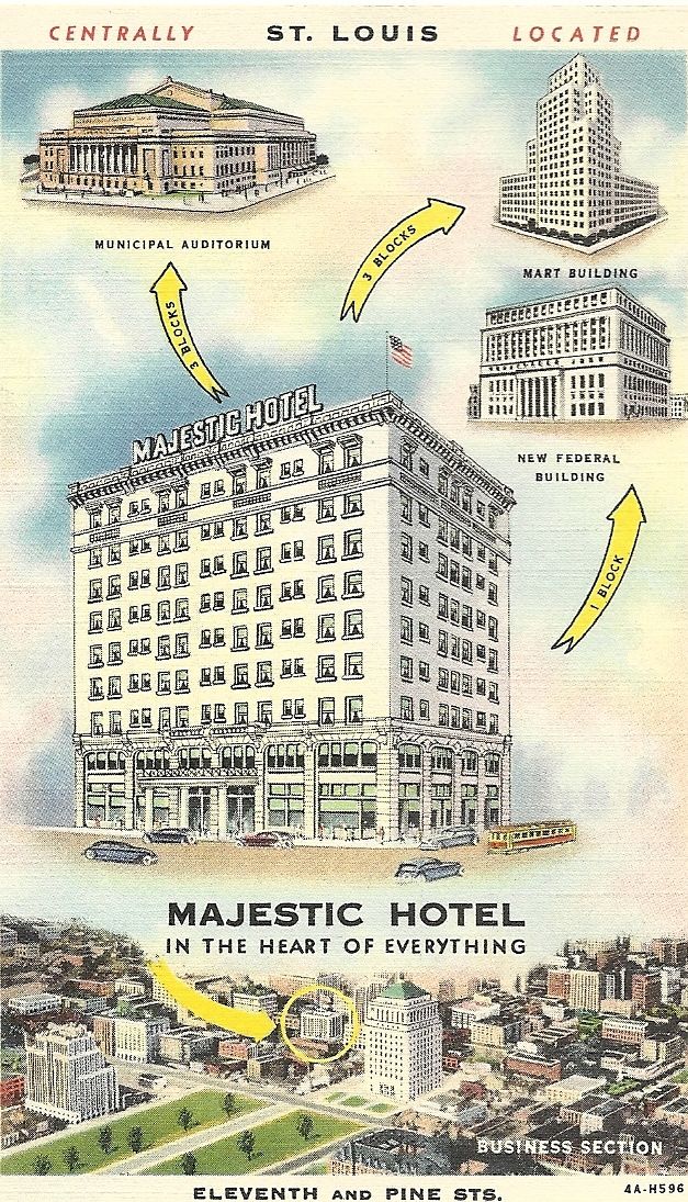 B267 Unused Postcard - Majestic Hotel, St. Louis, MO