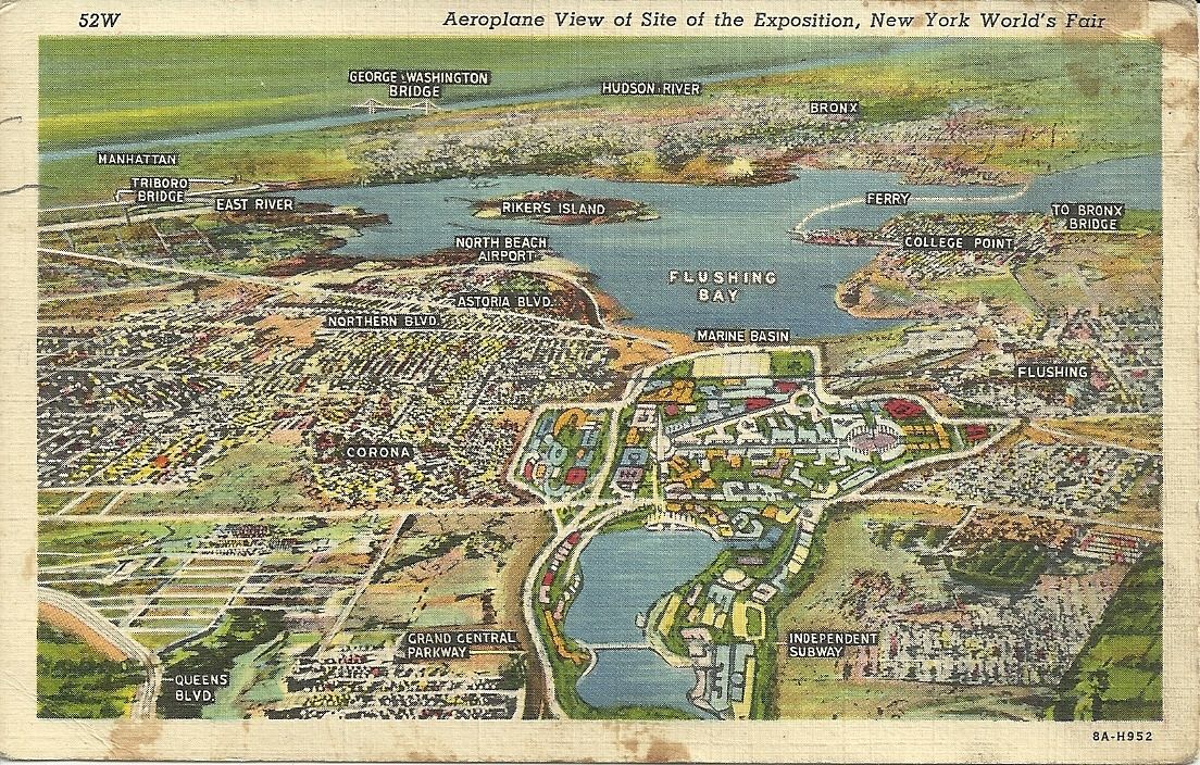 Title (ebay affiliate link): 1939 LINEN POSTCARD - AEROPLANE VIEW OF SITE OF THE EXPOSITION, NY WORLD''S FAIR