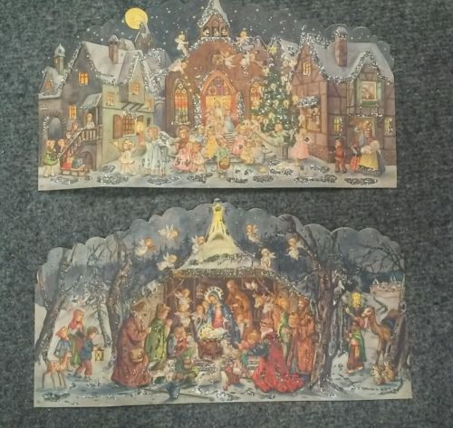Title (ebay affiliate link): 2 Antique Paper Litho Free Standing Christmas Advent Calendar Nativity Scenes