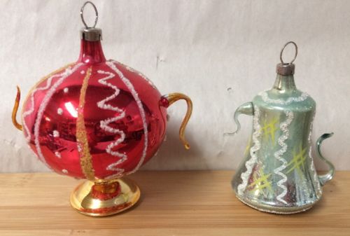 Title (ebay affiliate link): Vintage Glass Christmas Ornaments Teapots With Mica Lot Of 2 Pastel Blue Red