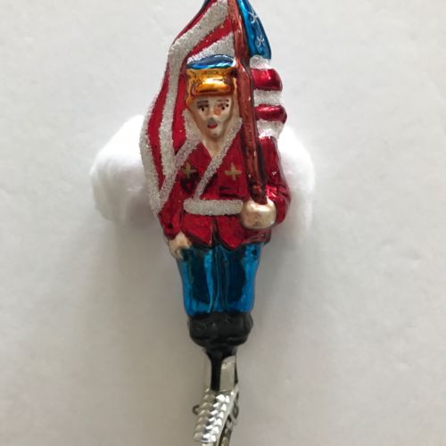 Vintage Rare Patriotic Clip On Christmas Ornament Soldier Flag glass Old World