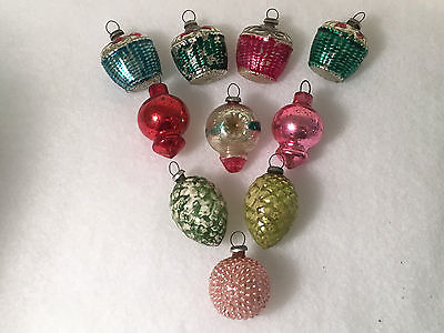 Vintage Xmas mini Feather Tree glass Ornaments miniature Pinecone bumpy LOT