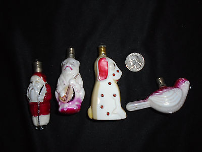 4 VINTAGE WORKING MILK GLASS C-6 LIGHT BULBS (CAT,DOG,SANTA,BIRD)