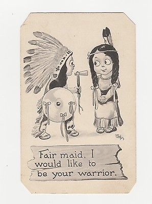 Vintage Postcard, INDIANS, Artist Signed, Maiden & Warrior, B & W Print, c.1908