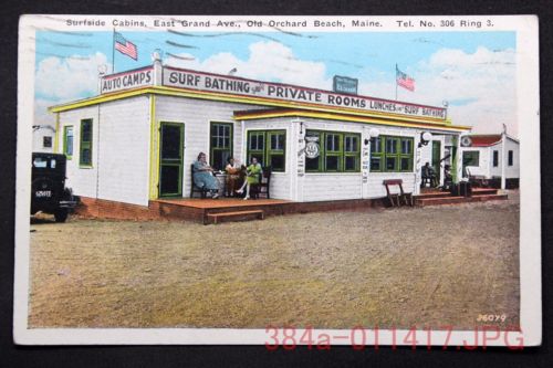 Title (ebay affiliate link): c.1936 Postcard Surfside Cabins East Grand Ave. Old Orchard Beach, Me. - Posted
